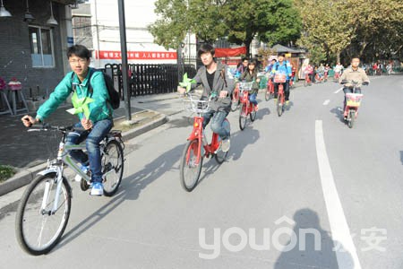为宣传“低碳环保,绿色出行”的理念,献礼扬州建城2500年,11月9日上午,扬州大学环境学院与文学院的同学们以“把绿色奉为梦想,把梦想视为行动”为宗旨,发起了一场“绿色扬州行”活动。同学们踏起扬州公共自行车,骑行扬州城,向市民发出倡议——“将低碳生活进行到底。”