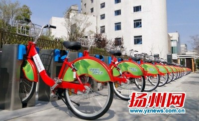 扬州最大“公车”站点建成 可停放100辆公共自行车
