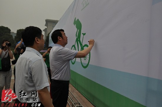 近年来,市委、市政府把环境保护作为“惠民工程”的重要内容,努力建设生态宜居岳阳,让岳阳成为了一座可以深呼吸的城市。岳阳市公共自行车的推出无疑又为岳阳增添了一道靓丽的风景。由岳阳市城管局、中国农业银行岳阳分行开发的便民自行车租赁服务,目前在岳阳市区范围内,已设立自行车租赁点210个,添置自行车5000余辆,办理自行车租赁卡20000多张,极大地方便了市民的生活和出行。本次骑行活动,既是倡导“低碳环保,绿色出行”理念的一次具体行动,也是推进“水墨丹青岳阳”建设,打造“深呼吸城市”的重要举措。