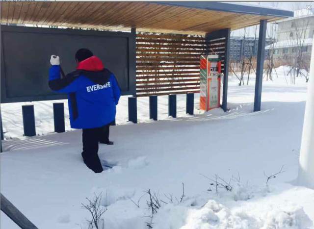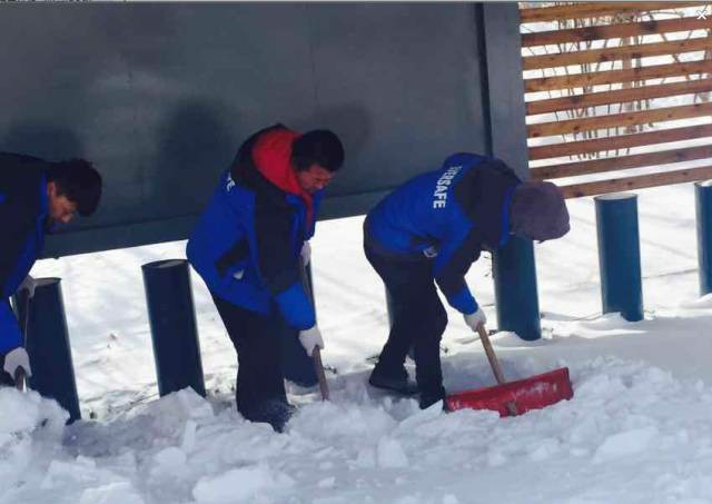 随后工作人员按小组划分去各个站点扫雪铲冰,保持站点清洁畅通。各员工及时奔赴各自劳动区域。面对厚厚的积雪,员工们充分发扬了“不怕脏、不怕累”的精神,干劲儿十足,有的挥起铁锹,有的推着雪板,有的奋力扫雪……铲累了,换换手;手冻了,呵呵气。尽管天气寒冷刺骨,但是参与扫雪铲冰员工的额头上却布满汗水,只为给长白山市民的绿色低碳出行带来便利……