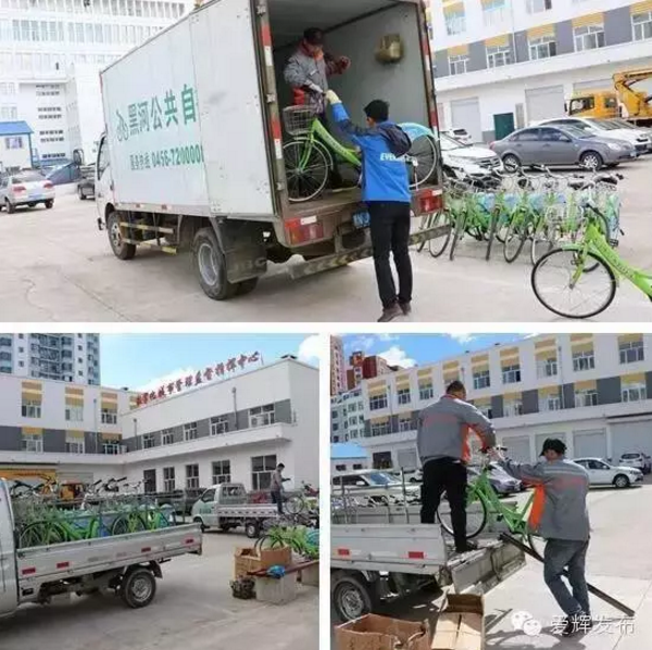 看,每一位工作人员都在认真有序地进行着投放工作,让黑河市民期待已久的 “小绿”再次上岗服务。