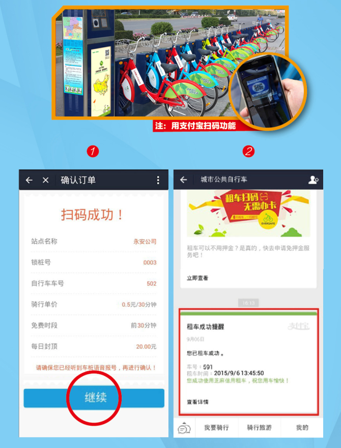 第四步:在永安公共自行车租车点找到二维码,扫码租车!