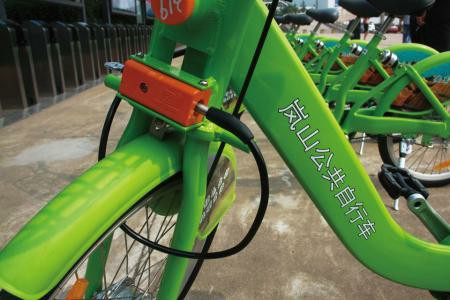 此外,岚山公共自行车站点采用双向锁车卡槽,车辆存放更安全。车辆还自带减震功能,耐寒、耐潮、耐腐蚀性强。